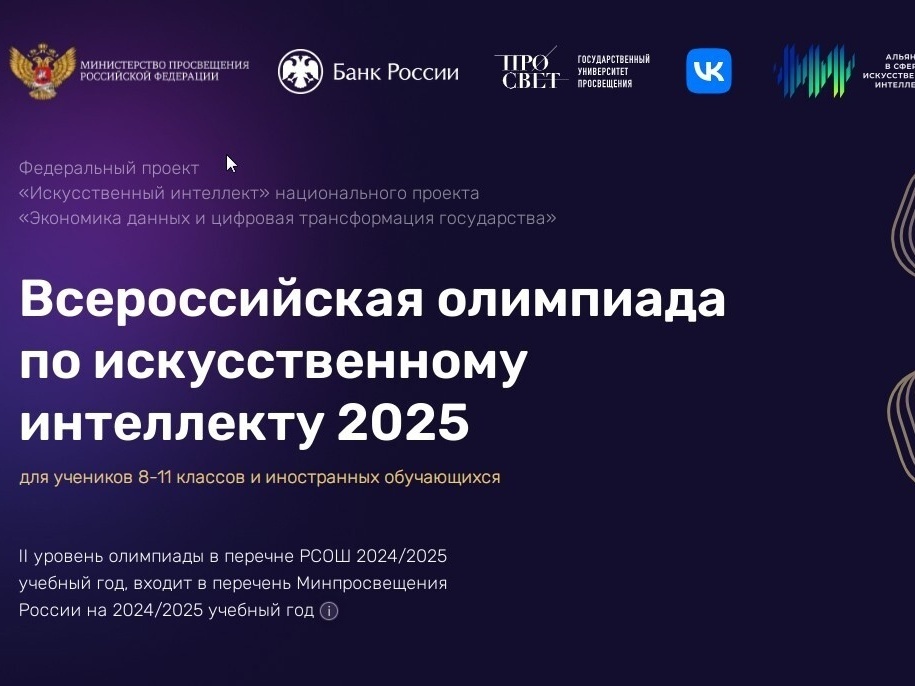 Приглашаем учащихся 8-11 классов, владеющих базовыми навыками программирования и знаниями по информатике и математике на углубленном уровне, принять участие во Всероссийской олимпиаде по искусственному интеллекту.